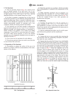 ABSTRACT This test method details the standard procedures for the determination of the comparative peel or stripping strength characteristics of adhesive bonds when tested on standard-sized specimens and under defined conditions of pretreatment, temperature, and testing machine speed. This method requires the use of a power-driven testing machine with a constant rate-of-jaw separation or of the inclination balance or pendulum type, and conditioning room or desiccator. SCOPE 1.1 This test method covers the determination of the comparative peel or stripping characteristics of adhesive bonds when tested on standard-sized specimens and under defined conditions of pretreatment, temperature, and testing machine speed. 1.2 The values stated in SI units are to be regarded as the standard. The values given in parentheses are for information only. 1.3 This standard does not purport to address all of the safety concerns, if any, associated with its use. It is the responsibility of the user of this standard to establish appropriate safety, health, and environmental practices and determine the applicability of regulatory limitations prior to use. 1.4 This international standard was developed in accordance with internationally recognized principles on standardization established in the Decision on Principles for the Development of International Standards, Guides and Recommendations issued by the World Trade Organization Technical Barriers to Trade (TBT) Committee.