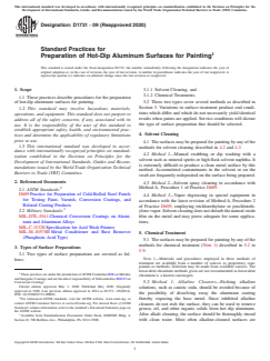 ASTM D1731-09(2020) - Standard Practices for Preparation of Hot-Dip Aluminum Surfaces for Painting - provides comprehensive guidelines for preparing hot-dip aluminum surfaces to ensure optimal paint adhesion and durability. Issued by ASTM International, this standard details accepted procedures for both solvent cleaning and chemical treatment of aluminum substrates before applying paints or coatings. These practices help achieve a clean, uniform, and suitable surface, directly influencing the performance and lifespan of protective and decorative paint systems.
