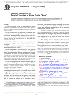 - Measurement Scope: Covers testing of tensile properties for single natural and synthetic fibers with sufficient length to be mounted in testing machines.