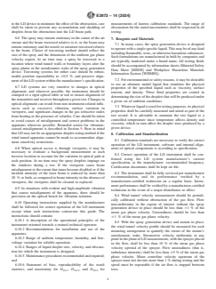 ASTM E2872-14(2024) is a guide published by ASTM International. Its full title is "Standard Guide for Determining Cross-Section Averaged Characteristics of a Spray Using Laser-Diffraction Instruments in a Wind Tunnel Apparatus". This standard covers: SIGNIFICANCE AND USE 5.1 This guide provides a means of using an LD instrument to obtain a droplet size distribution from a spray in gas co-flow that approximates a flux-sensitive sample.4 5.2 In many sprays, the experimenter shall account for spatial segregation of droplets by size. This guide provides a means of spatial averaging the droplet distribution. 5.3 The results obtained will be statistical in nature and refer to the time average of droplet size distribution of the entire spray. 5.4 This guide is used to calibrate a spray generation device to produce a desired droplet size distribution under prespecified environmental and co-flow conditions or characterize an unknown spray while minimizing the uncertainty in the measurement. SCOPE 1.1 The purpose of this guide is to define a test procedure for applying the laser diffraction (LD) method to estimate an average droplet size distribution that characterizes the flux of liquid droplets produced by a specified spray generation device under specified gas co-flow conditions using a specified liquid. The intended scope is limited to artificially generated sprays with high speed co-flow. The droplets are assumed to be in the size range of 1 µm to 2000 µm in diameter and occur in sprays that are contained within a volume as small as a few cubic centimetres or as large as a cubic metre. The droplet sizes are assumed to be distributed non-uniformly within the spray volume. 1.2 This guide is intended primarily to guide measurement of performance of nozzles and atomizers using LD instruments. 1.3 Non-uniform sprays require measurements across the entire spray cross section or through several chords providing a representative sample of the overall spray cross section. The aim of multiple-chord measurements is to obtain a single droplet size distribution that characterizes the whole spray rather than values from a single chordal measurement. 1.4 Use of this guide requires that the instrument does not interfere with spray production and does not significantly impinge upon or disturb the co-flow of gas and the spray. This technique is, therefore, considered non-intrusive. 1.5 The computation of droplet size distributions from the light-scattering distributions is done using Mie scattering theory or Fraunhofer diffraction approximation. The use of Mie theory accounts for light refracted through the droplet and there is a specific requirement for knowledge of both real (refractive) and imaginary (absorptive) components of the complex index of refraction. Mie theory also relies on an assumption of droplet homogeneity. The Fraunhofer diffraction approximation does not account for light refracted through the droplet and does not require knowledge of the index of refraction. 1.6 The instruments shall include data-processing capabilities to convert the LD scattering intensities into droplet size distribution parameters in accordance with Practice E799 and Test Method E1260. 1.7 The spray is visible and accessible to the collimated beam produced by the transmitter optics of the LD instrument. The shape and size of the spray shall be contained within the working distance of the LD system optics as specified by the instrument manufacturer. 1.8 The size range of the LD optic should be appropriate to the spray generation device under study. For example, the upper bound of the smallest droplet size class reported by the instrument shall be not more than 1/4 the size of DV0.1. 1.9 The values stated in SI units are to be regarded as standard. No other units of measurement are included in this standard. 1.10 This standard may involve hazardous materials, operations, and equipment. This standard does not purport to address all of the safety concerns, if any, associated with its use. It is the responsibility of the user of this standard to establish appropriate safety, health, and environmental practices and determine the applicability of regulatory lim...