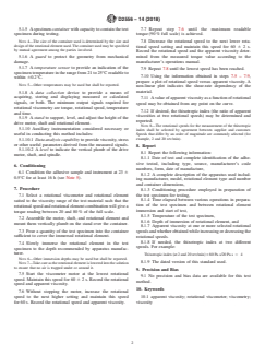 - Result Reporting: Requirements for reporting test details including apparatus specifications, sample conditioning, immersion details, temperature, viscosity values, and any measured thixotropic index.