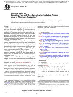 Keywords: prebaked carbon anodes, aluminum production, core sampling, ASTM D6353-23, non-destructive testing, sample plan, quality control, ISO 5022, ISO 8007-2, thermal conductivity, electrical resistivity, test specimen, standard guide.