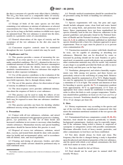 ASTM E857-05(2019) is a standard published by ASTM International. Its full title is "Standard Practice for Conducting Subacute Dietary Toxicity Tests with Avian Species". This standard covers: SIGNIFICANCE AND USE 5.1 This practice provides a means of measuring the susceptibility of an avian species to a test substance in its diet under controlled conditions. The LC50 obtained in this test is a conditional measure of subacute toxicity because consumption is voluntary, and because the dietary route may introduce metabolic transformations of the test substance that might be absent in other exposure techniques. 5.2 Use of this practice contributes to the evaluation of the hazards of chemicals to birds because exposure is analogous to most field exposures, that is, through dietary intake. 5.3 The use of this practice allows for observation of signs of toxicity in addition to mortality. 5.4 The dose-response curve provides additional information about the response of birds to a test substance. 5.5 This practice can be used to study the effects of test substances in combination in order to simulate situations where birds may be exposed to more than one substance simultaneously (1).3 5.6 This practice provides one basis for deciding whether additional toxicity testing should be conducted with birds. SCOPE 1.1 This practice describes a procedure for determining the subacute dietary toxicity of a test substance administered to birds in their daily diet. The LC50 value time to mortality and slope of the dose response curve may also be derived. 1.2 This practice is applicable to substances that can be mixed uniformly into the diet. 1.3 This practice is intended primarily to be used with the young of the following species: northern bobwhite (Colinus virginianus), Japanese quail (Coturnix japonica), mallard (Anas platyrhynchos), and ring-necked pheasant (Phasianus colchicus). Other species or age groups, for example, with wild-trapped birds, may be used with appropriate husbandry modifications to the practice. 1.4 This standard is used routinely to address avian regulatory testing requirements. Modifications to the procedures described in this standard have been proposed and are being evaluated to better address the needs of the latest risk assessment procedures. Specifically, the latest procedures call for individual bird feed consumption measurements so that a more precise dose can be determined. While such procedures may replace procedures described in the current standard, there is no certainty that the newest procedures will work as anticipated, and validation is not complete. Therefore, the current guideline has utility prior to validation and acceptance of a modified standard. 1.5 This standard does not purport to address all of the safety concerns, if any, associated with its use. It is the responsibility of the user of this standard to establish appropriate safety, health, and environmental practices and determine the applicability of regulatory limitations prior to use. For specific precautionary statements see Section 6. 1.6 This international standard was developed in accordance with internationally recognized principles on standardization established in the Decision on Principles for the Development of International Standards, Guides and Recommendations issued by the World Trade Organization Technical Barriers to Trade (TBT) Committee.