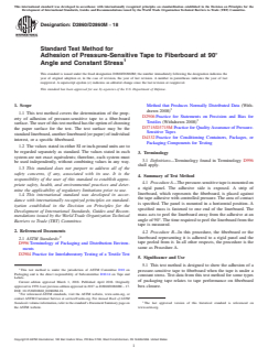 Keywords: ASTM D2860/D2860M-18, pressure-sensitive tape adhesion, fiberboard, packaging tape performance, 90 degree angle, constant stress, packaging standards, tape testing, linerboard, quality control, ASTM packaging standards