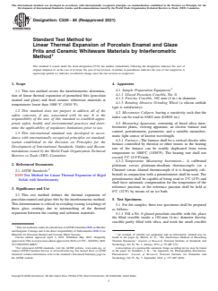 Keywords: ASTM C539-84(2021), porcelain enamel, glaze frits, ceramic whiteware, linear thermal expansion, interferometric method, thermal compatibility, quality control, standards compliance, ceramics industry.