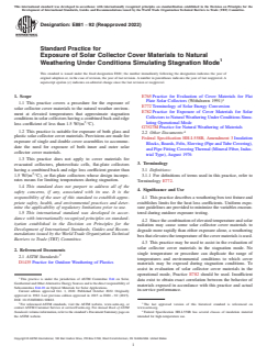 ASTM E881-92(2022) - Standard Practice for Exposure of Solar Collector Cover Materials to Natural Weathering Under Conditions Simulating Stagnation Mode
