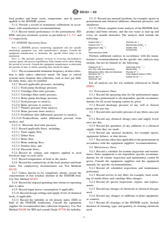 SIGNIFICANCE AND USE 4.1 Proper operation and maintenance of an ED/EDR system and any associated pretreatment system are key factors in obtaining optimum performance. This guide provides the necessary input data for the evaluation of the performance of the ED/EDR system, the pretreatment system, and the mechanical equipment in the plant. 4.2 This guide is for general guidance only and must not be used in place of the operating manuals and manufacturer's recommendations for specific equipment or a specific application. 4.3 Site dependent, equipment design and regulatory requirement factors prevent specific recommendations for all record keeping. Thus, only general record keeping relating to operation and maintenance is covered by this guide. SCOPE 1.1 This guide covers procedures for well defined record keeping for electrodialysis (ED) and electrodialysis reversal (EDR) systems. 1.2 This guide includes a start up report and record keeping for ED/EDR and pretreatment operating and maintenance data. 1.3 This guide is applicable to all waters but is not necessarily complete for waste waters. 1.4 This is a guide only and should not be construed as a complete delineation of all record keeping required for a specific application. 1.5 This standard does not purport to address all of the safety concerns, if any, associated with its use. It is the responsibility of the user of this standard to establish appropriate safety, health, and environmental practices and determine the applicability of regulatory limitations prior to use. 1.6 This international standard was developed in accordance with internationally recognized principles on standardization established in the Decision on Principles for the Development of International Standards, Guides and Recommendations issued by the World Trade Organization Technical Barriers to Trade (TBT) Committee.