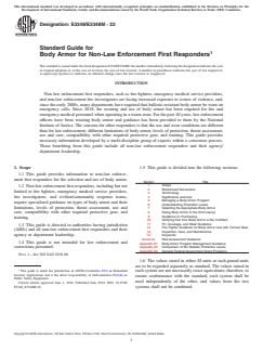 ASTM E3348/E3348M-22: Standard Guide for Body Armor for Non-Law Enforcement First Responders is an internationally recognized guidance document developed by ASTM International. It delivers comprehensive information for non-law enforcement first responders-such as fire fighters, emergency medical service (EMS) providers, fire investigators, and community response teams-on selecting, wearing, and maintaining body armor in situations where the risk of violence, including firearms and stabbing weapons, may be present.