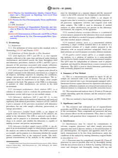 • Scope: The standard covers the quantitative analysis of multiple organohalide pesticides and PCBs, including alachlor, aldrin, chlordane, dieldrin, endrin, heptachlor, lindane, methoxychlor, toxaphene, and several Aroclor PCB mixtures. Chemical Abstract Service (CAS) registry numbers are specified for each analyte.