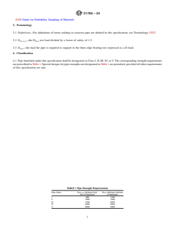 in the Test Methods C497 shall not be less than that prescribed in Table 1 for each respective class of pipe. It is not a requirement