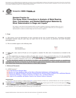 - Fire Assay Silver Corrections: This standard details methods for correcting silver results obtained from fire assays by accounting for residual silver remaining in slags and cupels after the assay process.