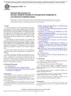 ASTM D7301-21 - Standard Specification for Nuclear Graphite Suitable for Components Subjected to Low Neutron Irradiation Dose