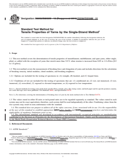 REDLINE ASTM D2256/D2256M-21 - Standard Test Method for Tensile Properties of Yarns by the Single-Strand Method
