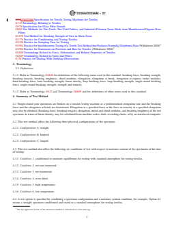 ASTM D2256/D2256M-21 references several key ASTM standards relevant to yarn and textile testing:
