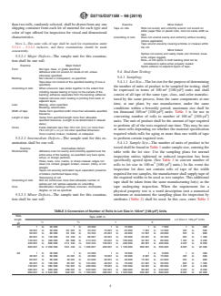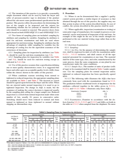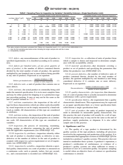 SIGNIFICANCE AND USE 4.1 The quality of a tape product is determined by the quality systems of the tape producer, including all processes involved in the engineering and production of the product. It is recommended that appropriate sections of ANSI/ASQC Q94 be included in a producer's quality systems. This practice does not intend to standardize these systems. A producer's reputation, a producer's certification of conformance, or evidence of a producer's quality systems are often sufficient to ensure a purchaser or user of a consistent quality. Acceptance sampling is useful when an objective basis of contract or specification conformance is desired. 4.2 The intention of this practice is to provide a reasonably simple document which can be used by both the buyer and seller of pressure-sensitive tape to determine if the product offered for sale meets some predetermined specification for the product. This practice offers the procedures for determining the size of the sample to be inspected and the criteria for determining whether the lot (amount of material offered for sale) should be accepted or rejected. This practice draws from and is based on both ANSI/ASQC Z1.4 and ANSI/ASQC Z1.9. 4.3 Two forms of sampling plans are included: sampling by attributes and sampling by variables. Sampling by attributes is used for end-item examination and both are used where appropriate for end-item testing. Sampling by attributes has the advantage of simplicity while sampling by variables has the advantage of costing less for the equivalent assurance of the correctness of decisions. 4.3.1 Sampling plans for inspection by attributes (see Table 2), should be used for end-item examination (see 5.3). (A) This table is based on Tables I, II-A, II-B, and II-C of ANSI/ASQC Z1.4 using an inspection level of S-3. |Co = Use first sample plan below arrow. If sample size equals or exceeds lot or batch size, do 100 % inspection. |Cu = Use first sample plan above arrow. Ac = Acceptance number. Re = Rej... SCOPE 1.1 This practice contains uniform quality assurance provisions for pressure-sensitive tapes and establishes sampling plans and procedures for acceptance inspection. 1.2 Limitations: 1.2.1 This practice only includes procedures for when an upper or a lower specification limit is given. It does not provide for double, both minimum and maximum, specification limits. Note 1: When double specification limits are given (applies to variables testing only), use may be made of Table C-3 and Example C-3 of ANSI/ASQC Z1.9. 1.2.2 The variables sampling plans apply to a single quality characteristic. Having obtained the sample and the responses to the physical property tests, acceptance is determined on one quality characteristic at a time. The process is repeated for each additional characteristic. 1.2.3 The variables sampling plans require that the response to each quality characteristic is normally distributed either directly or by transformation. If this is not known, the potential user of this practice should seek the counsel of someone with sufficient understanding of statistical techniques to provide that information. 1.3 The values stated in either SI or inch-pound units are to be regarded separately as standard. The values stated in each system may not be exact equivalents; therefore, each system must be used independently, without combining values in any way. 1.4 This standard does not purport to address all of the safety concerns, if any, associated with its use. It is the responsibility of the user of this standard to establish appropriate safety, health, and environmental practices and determine the applicability of regulatory limitations prior to use. 1.5 This international standard was developed in accordance with internationally recognized principles on standardization established in the Decision on Principles for the Development of International Standards, Guides and Recommendations issued b...