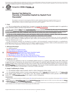 • Measurement Procedure: The standard outlines strict procedures for preparing and testing emulsified asphalt samples at standard temperatures (25°C [77°F] and 50°C [122°F]) using the Saybolt Furol viscometer.