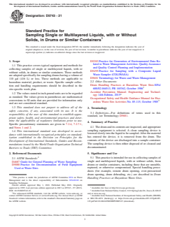 ASTM D5743-21 - Standard Practice for Sampling Single or Multilayered Liquids, with or Without Solids, in Drums or Similar Containers