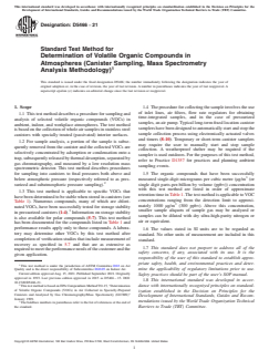 ASTM D5466-21 - Standard Test Method for Determination of Volatile Organic Compounds in Atmospheres (Canister Sampling, Mass Spectrometry Analysis Methodology)
