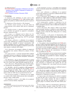 1.2 For sample analysis, a portion of the sample is subsequently removed from the canister and the collected VOCs are selectively concentrated by adsorption or condensation onto a trap, subsequently released by thermal desorption, separated by gas chromatography, and measured by a low resolution mass spectrometric detector. This test method describes procedures for sampling into canisters to final pressures both above and below atmospheric pressure (respectively referred to as pressurized and subatmospheric pressure sampling).2