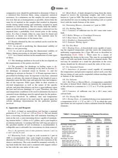 5.4 The procedure for shrinkage in boiling water is described in Section 12, for shrinkage in dry heat in Section 13, for shrinkage in saturated steam in Section 14, and for shrinkage in solvents in Section 15. A 30-min exposure time is prescribed for boiling water. In exposure to dry heat, saturated steam, or solvents, the extent of change in the length of yarn is dependent upon the fiber type and upon t...