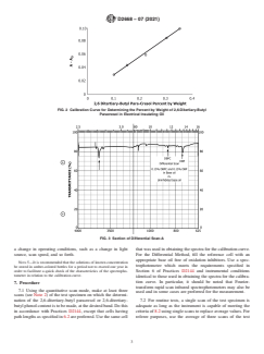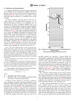ASTM D2668-07(2021) is a standard published by ASTM International. Its full title is "Standard Test Method for 2,6-<emph type="bold"><emph type="ital">di-tert</emph></emph >-Butyl-<emph type="bold"><emph type="ital"> p</emph></emph>-Cresol and 2,6-<emph type="bold"><emph type="ital">di-tert</emph></emph>-Butyl Phenol in Electrical Insulating Oil by Infrared Absorption". This standard covers: SIGNIFICANCE AND USE 3.1 The quantitative determination of 2,6-ditertiary-butyl paracresol and 2,6-ditertiary-butyl phenol in a new electrical insulating oil measures the amount of this material that has been added to the oil as protection against oxidation. In a used oil it measures the amount remaining after oxidation has reduced its concentration. The test is also suitable for manufacturing control and specification acceptance. 3.2 When an infrared spectrum is obtained of an electrical insulating oil inhibited with either of these compounds there is an increase in absorbance of the spectrum at several wavelengths (or wavenumbers). 2,6 ditertiary-butyl paracresol produces pronounced increases in absorbance at 2.72 μm (3650 cm−1), and 11.63 μm (860 cm−1 ). 2,6 ditertiary-butyl phenol produces pronounced increases in absorbance at 2.72 μm (3650 cm−1) and 13.42 μm (745 cm −1). 3.3 When making this test on other than a highly oxidized oil or when using a double-beam spectrophotometer, it has been found convenient to obtain the spectrum between 2.5 μm (4000 cm−1) and 2.9 μm (3450 cm−1) because the instrument is compensated for the presence of moisture and the band is not influenced by intermolecular forces (associations). However, when testing a highly oxidized oil or when using a single-beam instrument better results may be obtained if the scan is made between 10.90 μm (918 cm−1) and 14.00 μm (714 cm−1). 3.4 Increased absorption at 11.63 μm (860 cm −1) or 13.42 μm (745 cm−1) or both, will identify the inhibitor as 2,6-ditertiary-butyl paracresol or 2,6-ditertiary-butyl phenol respectively (Note 1). Note 1: The absorbance at 745 cm−1 for 2,6-ditertiary-butyl phenol and at 860 cm−1 for 2,6-ditertiary-butyl paracresol for equal concentrations will be in the approximate ratio of 2.6 to 1. SCOPE 1.1 This test method covers the determination of the weight percent of 2,6-ditertiary-butyl paracresol (DBPC) and 2,6-ditertiary-butyl phenol (DBP) in new or used electrical insulating oil in concentrations up to 0.5 % by measuring its absorbance at the specified wavelengths in the infrared spectrum. 1.2 The values stated in SI units are to be regarded as standard. No other units of measurement are included in this standard. 1.3 This standard does not purport to address all of the safety concerns, if any, associated with its use. It is the responsibility of the user of this standard to establish appropriate safety, health, and environmental practices and determine the applicability of regulatory limitations prior to use. 1.4 This international standard was developed in accordance with internationally recognized principles on standardization established in the Decision on Principles for the Development of International Standards, Guides and Recommendations issued by the World Trade Organization Technical Barriers to Trade (TBT) Committee.