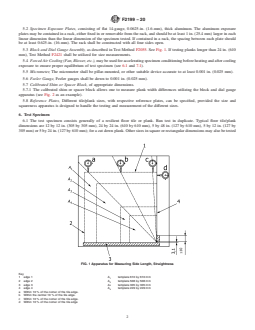 - Apparatus and Procedure: Outlines necessary equipment such as mechanical convection ovens, aluminum exposure plates, block and dial gauge assemblies, micrometers, and feeler gauges.