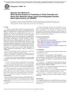 ASTM D8399-23 - Standard Test Method for Multi-residue Analysis of Pesticides in Dried Cannabis and Hemp Raw Materials Using Liquid Chromatography-Tandem Mass Spectrometry (LC-MS/MS)
