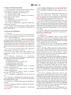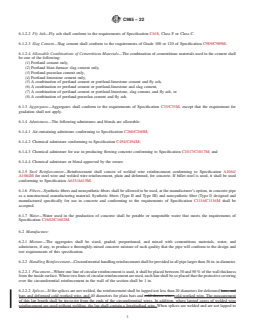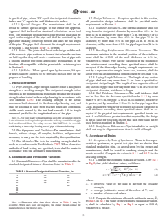 - Design and Manufacturing: Details the required design parameters, manufacturing process, allowable materials, and physical characteristics such as diameter, wall thickness, joint details, and admixture types.