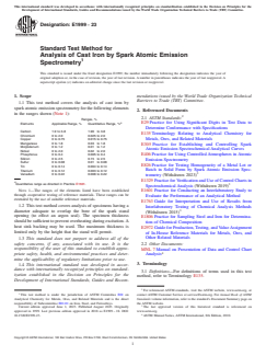 - Scope of Analysis: Specifies the determination of elements such as carbon, chromium, copper, manganese, molybdenum, nickel, phosphorus, silicon, sulfur, tin, titanium, and vanadium in specific concentration ranges suitable for cast iron.