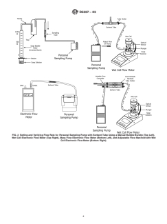 flow rate of personal sampling pumps. The practice is applicable to systems using air sampling devices. Provisions are made for
