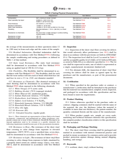 - Physical Requirements: The standard specifies properties for residual indentation, flexibility, resistance to static loads, chemical resistance, and color stability under heat and light.