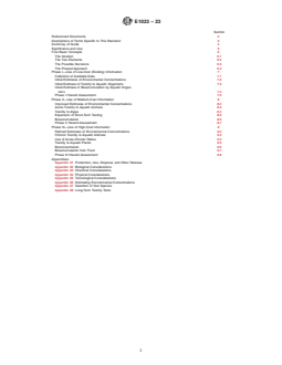ASTM E1023-23 is complemented by several other ASTM standards that provide terminology, detailed test methods, and specific procedures for evaluating toxicity and environmental fate in aquatic systems, including: