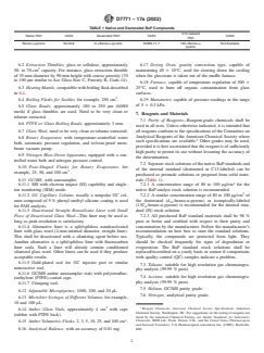 ASTM D7771-17a(2022) is a standard published by ASTM International. Its full title is "Standard Test Method for Determination of Benzo-α-Pyrene (BaP) Content in Carbon Black". This standard covers: SIGNIFICANCE AND USE 5.1 This test procedure is used to determine the concentration of BaP extracted from carbon black by the means of a Soxhlet extraction apparatus with toluene. SCOPE 1.1 This test method covers the qualitative and quantitative determination of only benzo-α-pyrene (BaP), a specific polycyclic aromatic hydrocarbon (PAH), on carbon black. The procedure involves Soxhlet extraction with toluene and analysis by gas chromatography with mass spectrometry (GC/MS). This method is not intended to test for U.S. Food and Drug Administration (FDA 21 CFR 178.3297) compliance of carbon blacks used for indirect food contact applications. 1.2 Units—The values stated in SI units are to be regarded as the standard. No other units of measurement are included in this standard. 1.3 This standard does not purport to address all of the safety concerns, if any, associated with its use. It is the responsibility of the user of this standard to establish appropriate safety, health, and environmental practices and determine the applicability of regulatory limitations prior to use. 1.4 This international standard was developed in accordance with internationally recognized principles on standardization established in the Decision on Principles for the Development of International Standards, Guides and Recommendations issued by the World Trade Organization Technical Barriers to Trade (TBT) Committee.