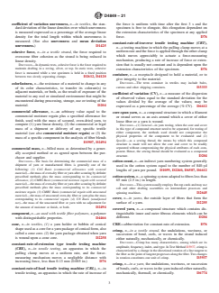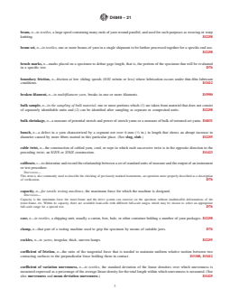 SCOPE 1.1 This standard is a compilation of terminology developed by Committee D13.58 on Yarns and Fibers. 1.1.1 This terminology, mostly definitions, is unique to fibers and yarns used in the textile industry. Terms that are generally understood or adequately defined in other readily available sources are not included. 1.1.2 Subcommittee D13.58 has jurisdictional responsibility for every item in this standard. The standards in which the terms and definitions are used are listed by number after the definition. The wording of an entry cannot be changed without the approval of 13.58 subcommittee. Any changes approved by the subcommittee and main committee are then directed to subcommittee D13.92 on Terminology for subsequent changes or additions to Terminology D123. 1.1.3 This terminology standard is not all inclusive of the terms under the jurisdiction of Subcommittee D13.58. Other terminology standards under the jurisdiction of Subcommittee D13.58 are D3888, D4466, and D4848. 1.2 This international standard was developed in accordance with internationally recognized principles on standardization established in the Decision on Principles for the Development of International Standards, Guides and Recommendations issued by the World Trade Organization Technical Barriers to Trade (TBT) Committee.