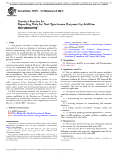 ASTM F2971-13(2021) - Standard Practice for Reporting Data for Test Specimens Prepared by Additive Manufacturing