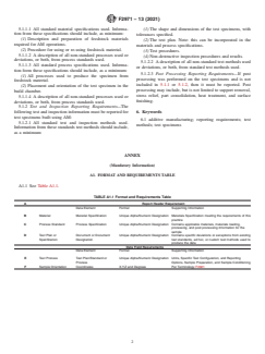 SIGNIFICANCE AND USE 4.1 Due to variables unique to each AM process and piece of equipment, it is critical to standardize descriptions used to report the preparation, processing, and post processing of specimens produced for tests or evaluation. The intent of this practice is to consistently document the materials and processing history associated with specimens undergoing test or evaluation. The level of detail for the documentation will match the application. 4.2 This practice establishes minimum data element requirements for reporting of material and process data for the purpose of: 4.2.1 Standardizing test specimen descriptions and test reports, 4.2.2 Assisting designers by standardizing AM materials databases, 4.2.3 Aiding material traceability through testing and evaluation, 4.2.4 Capturing property-parameter-performance relationships of AM specimens to enable predictive modeling and other computational approaches. SCOPE 1.1 This practice describes a standard procedure for reporting results by testing or evaluation of specimens produced by additive manufacturing (AM). This practice provides a common format for presenting data for AM specimens, for two purposes: (1) to establish further data reporting requirements, and (2) to provide information for the design of material property databases. 1.2 The values stated in SI units are required for all additive manufacturing related standards. However, when this standard is used in combination with any test method or equipment specified in inch-pound units the results should be reported with mathematical conversions to SI units immediately following in parentheses. The conversions shall be provided for information only and are not considered standard. 1.3 This standard does not purport to address all of the safety concerns, if any, associated with its use. It is the responsibility of the user of this standard to establish appropriate safety, health, and environmental practices and determine the applicability of regulatory limitations prior to use. 1.4 This international standard was developed in accordance with internationally recognized principles on standardization established in the Decision on Principles for the Development of International Standards, Guides and Recommendations issued by the World Trade Organization Technical Barriers to Trade (TBT) Committee.