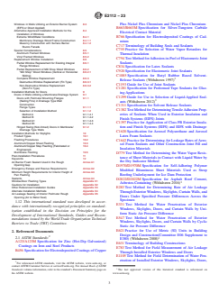 ASTM E2112-23 has the following relationships with other standards: It is inter standard links to ASTM E2357-24, ASTM C1642-20, ASTM C755-20, ASTM D1970/D1970M-19, ASTM C755-19b, ASTM C755-19a, ASTM C755-19, ASTM C1397-13(2019), ASTM C717-19, ASTM D1970/D1970M-18, ASTM E783-02(2018), ASTM C717-18, ASTM C920-18, ASTM D1970/D1970M-17a, ASTM C717-17a. Understanding these relationships helps ensure you are using the most current and applicable version of the standard.