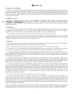 5.1 This test method measures the molecular weight distribution and molecular weight averages of polyethylene (except
