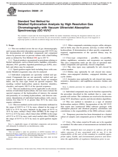 1.1 This test method covers the use of gas chromatography and vacuum ultraviolet absorption spectroscopy (GC-VUV) for the determination of individual compounds and compound classes by percent mass or percent volume with a final boiling point as defined by Test Method D86 up to 225 °C.