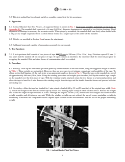 8.1 Winding—Half lap the unmarked specimen perfectly on the mandrel of the test fixture, using the suggested weight as shown