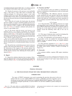 1.2 The applicable range of the induction time is from a few minutes up to several hundred minutes or more. However, the range of induction times used for developing the precision statements in this test method was from 40 min to 280 min.