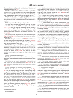 - Performance Testing: Details required prototype and in-place tests for climb nets, barrier nets, safety nets, and no-hold mesh, including procedures for measuring endpoint strength, safety, and resistance to wear, abrasion, and entrapment.