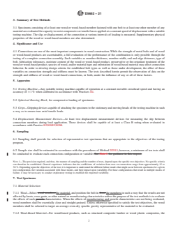 Details requirements for preparing test specimens, ensuring exclusion or inclusion of knots and cross grain based on test objectives and emphasizing representativeness of structural applications. - Measurement and Reporting