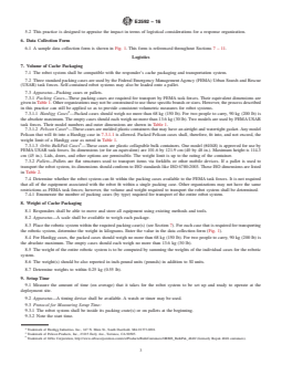 logistical planning for the response teams. Additional volume and weight shall be stored and transported to the response site.