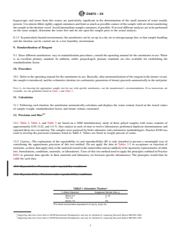 - The standard addresses procedures for reagent standardization, sample handling (including precautions for hygroscopic materials), and calibration.