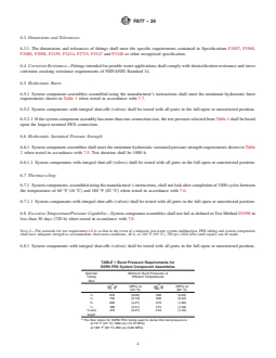 6.6.1 System component assemblies shall meet the minimum hydrostatic sustained pressure strength requirements shown in Table