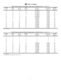 ABSTRACT This practice covers bolt and stud bolt lengths, quantities, and thread series for pipe to pipe and pipe to valve flanged joints. This specification presents tables of bolting lengths for different steel flanged joints. SCOPE 1.1 This practice covers bolt and stud bolt lengths, quantities, and thread series for pipe to pipe and pipe to valve flanged joints (Note 1) in the nominal pipe size ranges of 1/2 in. through 48 in. (12.7 mm through 1219 mm) diameter and pressure range of 125 psi through 2500 psi (0.8 kPa through 17 236 kPa). Note 1: This is applicable when flange of valve has the same thickness as mating flange. 1.2 The values stated in inch-pound units are to be regarded as standard. The values given in parentheses are mathematical conversions to SI units that are provided for information only and are not considered standard. 1.3 This standard does not purport to address all of the safety concerns, if any, associated with its use. It is the responsibility of the user of this standard to establish appropriate safety, health, and environmental practices and determine the applicability of regulatory limitations prior to use. 1.4 This international standard was developed in accordance with internationally recognized principles on standardization established in the Decision on Principles for the Development of International Standards, Guides and Recommendations issued by the World Trade Organization Technical Barriers to Trade (TBT) Committee.
