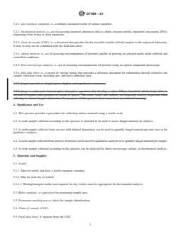 4.2 A swab sample collected according to this practice is intended to be used to assess fungal material on surfaces.