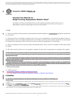 1.1 These test methods describe procedures for determining the biaxial formability of a test specimen of superplastic metallic sheet in a circular die.