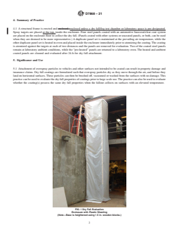 5.1 Attachment of overspray particles to vehicles and other surfaces not intended to be coated can result in property damage and insurance claims. Dry fall coatings are formulated such that overspray particles dry as they move through the air, and before they land on horizontal surfaces. These particles can then be brushed off, vacuumed or washed from the surfaces with no damage. This practice can be used to evaluate the dry fall properties of coatings prior to large scale use. The practice can also be used to evaluate whether the coating(s) possess the same dry fall properties when the fallout collects on surfaces with an elevated temperature.